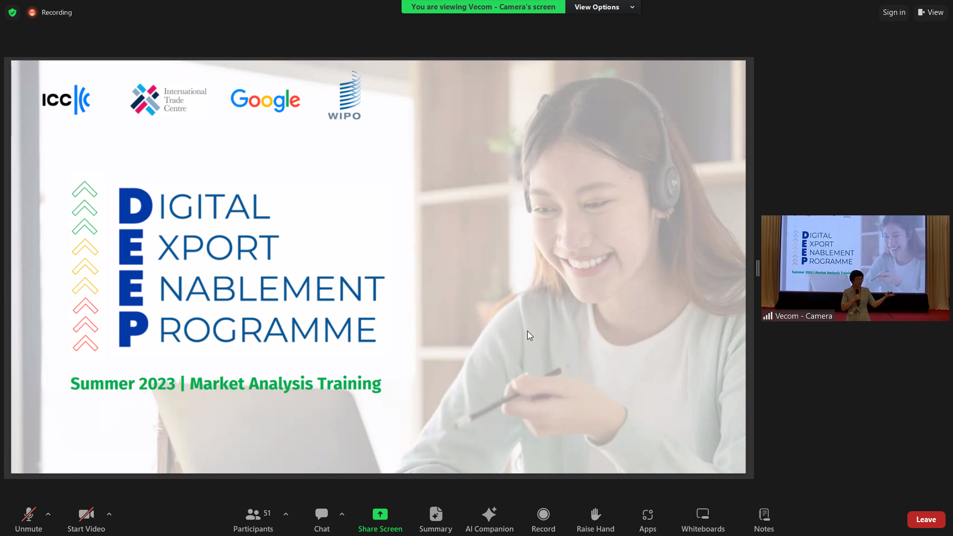 Trong khuôn khổ chương trình DEEP, Hiệp hội Thương Mại điện tử Việt Nam - VECOM đã tổ chức chương trình đào tạo trong hai ngày (28-29/11/2023) tại Hà Nội. Chương trình đào tạo đã thu hút sự quan tâm của nhiều doanh nghiệp trên toàn quốc, đặc biệt là những doanh nghiệp quan tâm đến việc triển khai xuất khẩu trên nền tảng trực tuyến.