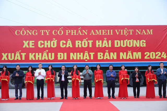Thủ tướng Phạm Minh Chính cắt băng chúc mừng xuất khẩu lô hàng cà rốt sang thị trường Nhật Bản ngày 15/2